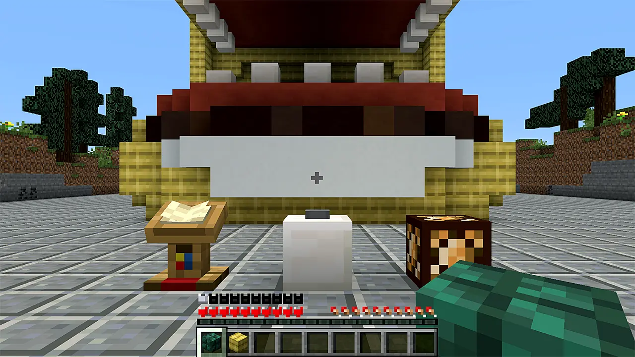 大人気のおもちゃ、イタイワニーをマイクラで再現しました。ワニの歯を交代で押し込んでいき、噛まれたら負けです。今回はひとつの装置で、ワニとタイガーの切り替えが可能。口の中が見やすいように、他のプレイヤーはスペクターモードで見学できるようにしました。ひとりでもゲームを開始出来ますが、マルチプレイ推奨です。