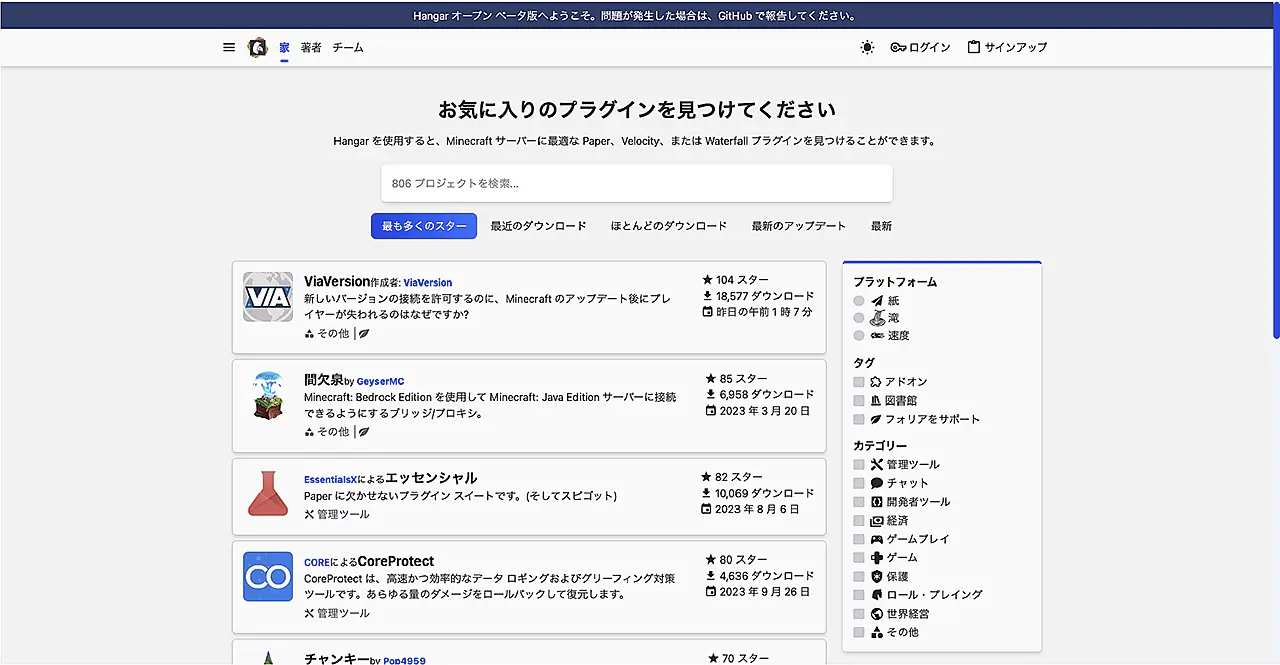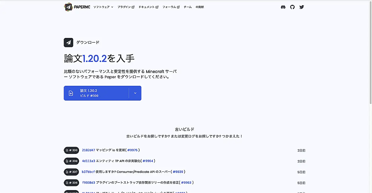 大人の事情により自分でビルドしないと使えなかったBukkit/Spigotサーバーですが、PaperMCは公式のバニラサーバーと同じように、ダウンロードするだけで簡単に使えます。PaperMCに対応したプラグインも充実。また、Spigotベースで改良されているので、過去のプラグインもサポートされています。