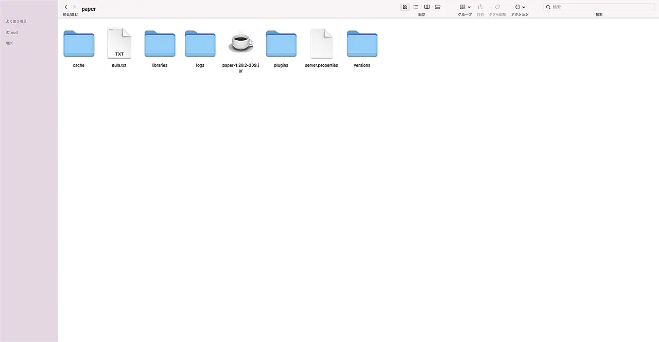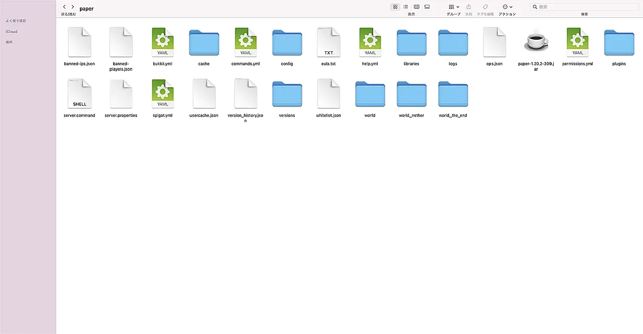 ※paperの(バージョン)はダウンロードした時期によって変わります。paper.jarに変更してもOKです。