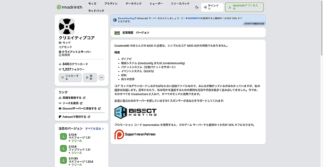 Java版1.21対応。前提モッド/NeoForge、Fabric。