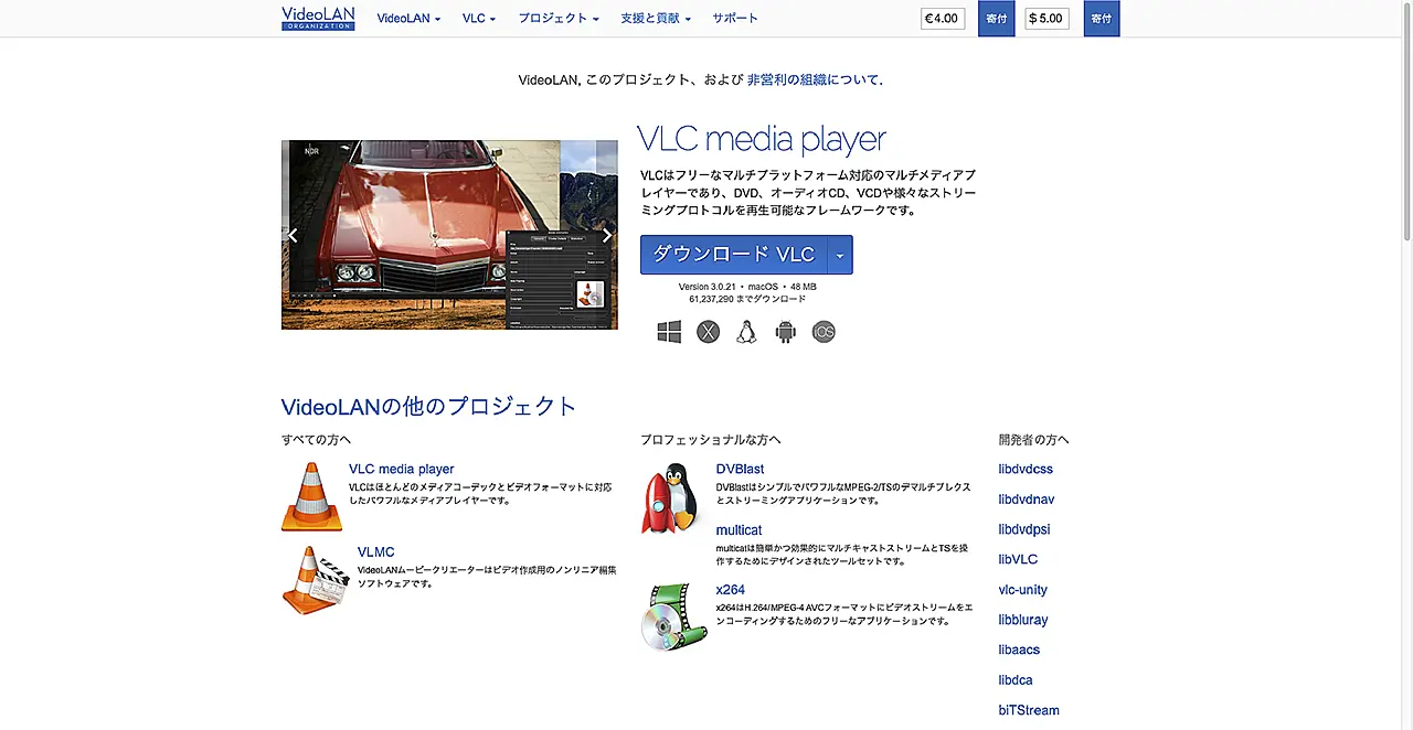 Mac、Linuxの場合は「VLC3」のインストールが必要です。※Windowsは不要。