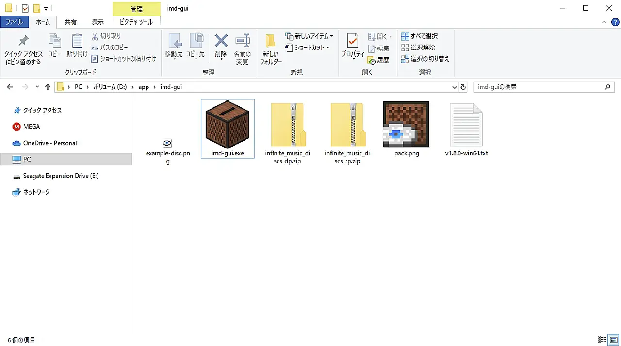 imd-gui.exeと同じフォルダーに、圧縮されたリソースパックとデータパックが作成されます。それぞれゲームディレクトリの「resourcepacks」にパック名_rp.zip、「datapacks」にパック名_dp.zipを入れます。
