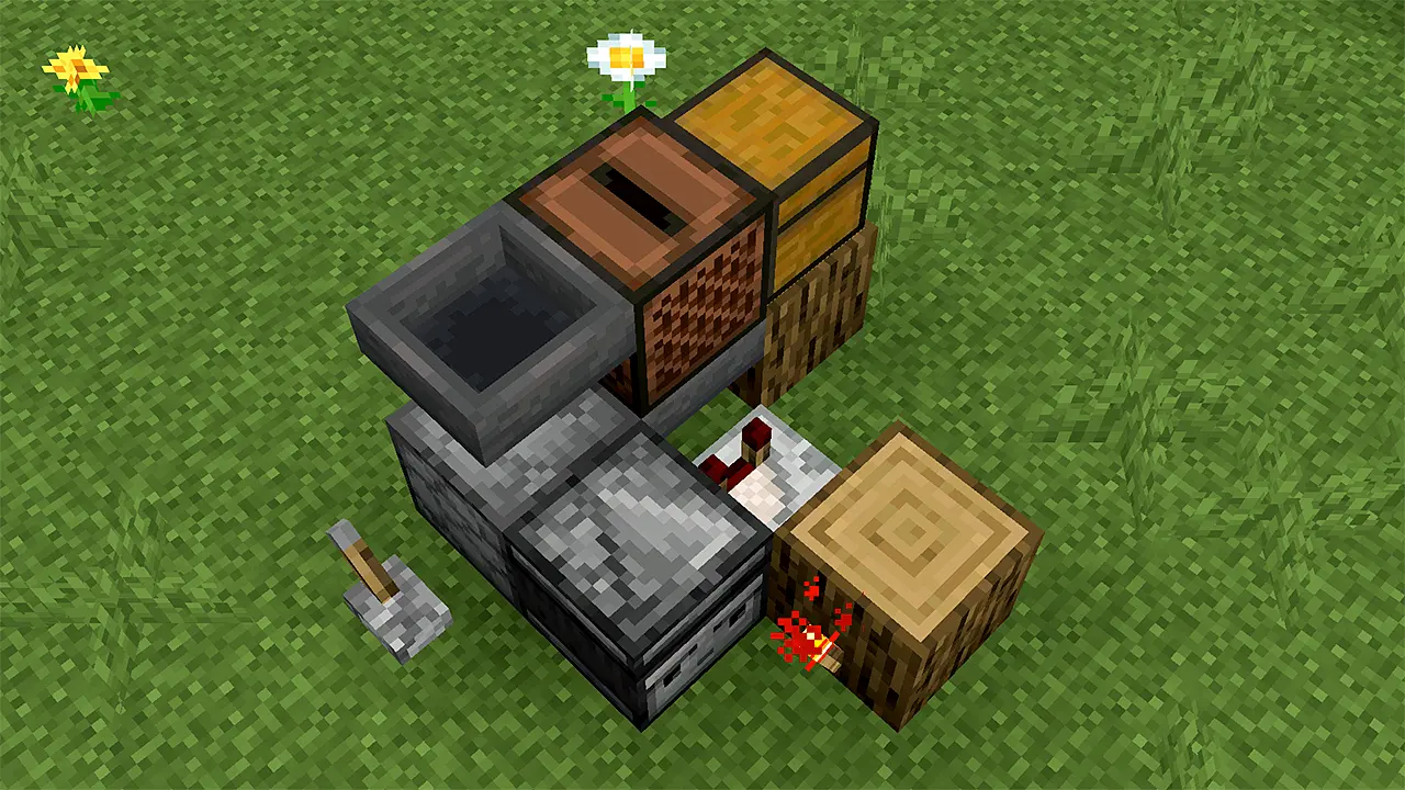 Java版では、レコードの取り出しにコマンドを使う必要がありましたが、現在は統合版と同じく再生が停止したレコードを、ジュークボックスの下からホッパーで取り出せます。※v1.21.1現在。