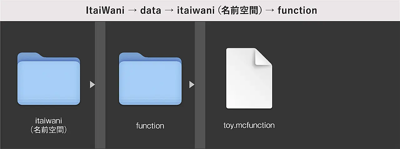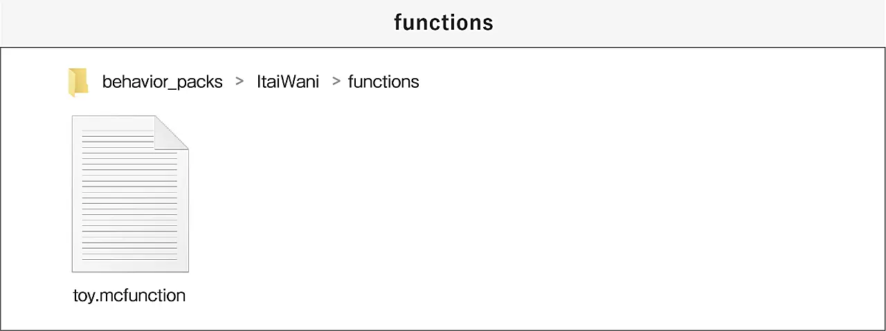Java版と統合版のフォルダ構造は異なりますが、ファンクションファイルは同じものです。動作確認用の簡単なコマンドを用意しました。