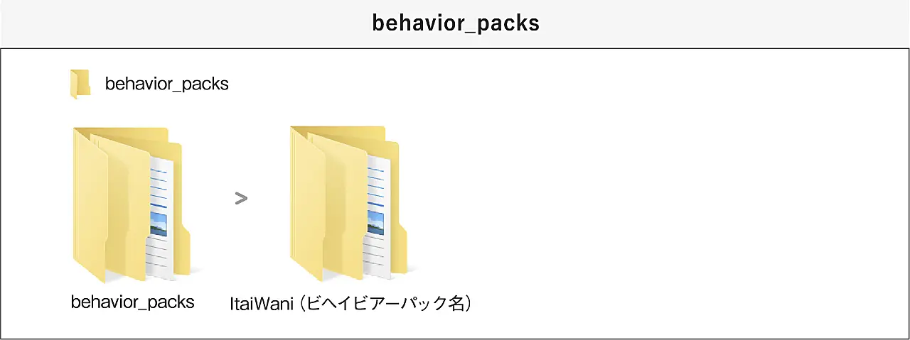①デスクトップに、フォルダー名「behavior_packs」を作成。