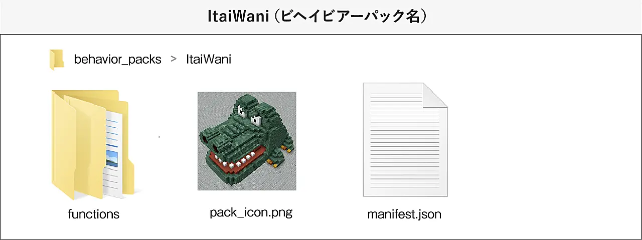 ③その中に、フォルダー名「functions」、「manifest.json」「pack_icon.png」を入れます。