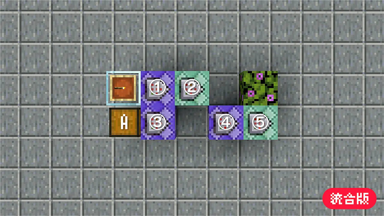 「A」はチェスト。③はティックの遅延:10。④はティックの遅延:2。⑤はティックの遅延:12。③④⑤は最初のティックで実行:オフ。
